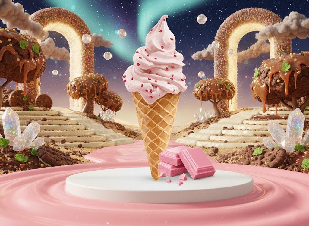 Creamy strawberry ice cream bursting with sweet, fruity flavor for a smooth and refreshing treat.